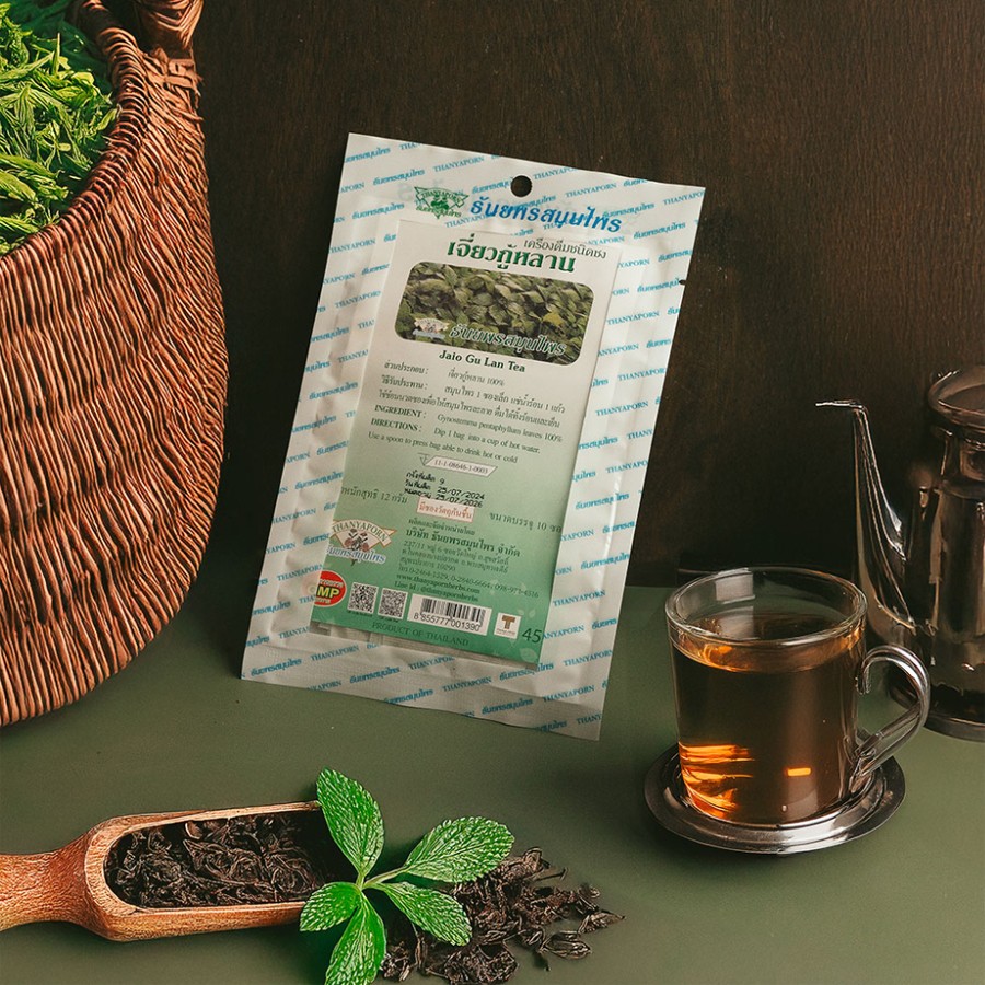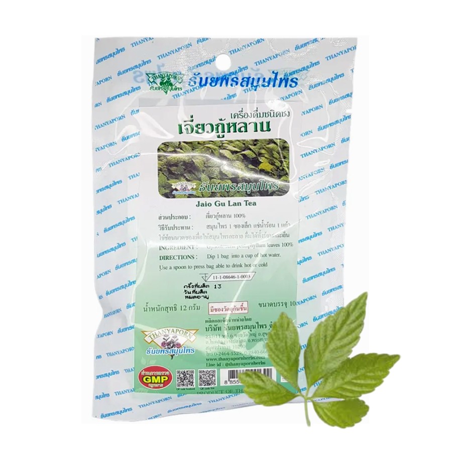 Тайский тонизирующий чай с Гиностем..показатьмой Пятилистной Джиао-Гу-Лан от бренда Thanyaporn Herbs - это натуральный напиток долголетия, ценимый в восточной медицине за комплексное оздоровительное действие. Листья гиностеммы укрепляют иммунитет, поддерживают здоровье сердца и помогают регулировать уровень сахара и холестерина. Кроме того, этот чай благотворно влияет на нервную систему, повышая стрессоустойчивость и улучшая общее самочувствие.