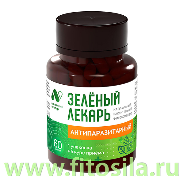 Фитокомплекс Антипаразитарный Зеленый лекарь ПЭТ банка, капс. 0,54 г №60 "Алтайский нектар"