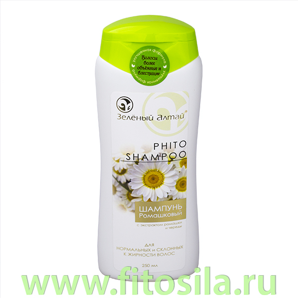 Фито-шампунь "Ромашковый" рекомендуется для нормальных и склонных к жирности волос. Высокое содержание экстрактов ромашки и череды, а также присутствие салицилата натрия позволяют оптимизировать водно-жировой обмен в клетках кожи головы, положительно воздействуют на сальные железы околоволосяных луковиц, успокаивают и ускоряют процессы заживления.