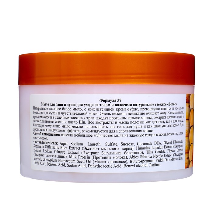 Мыло для бани и душа, для ухода за телом и волосами натуральное таежное «Белое» 450 мл