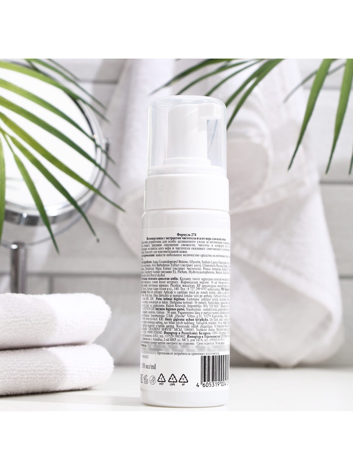 * Пенка бережно очищает интимную зону, не нарушая естественный баланс микрофлоры и не вызывая раздражений, что особенно важно для чувствительной кожи.