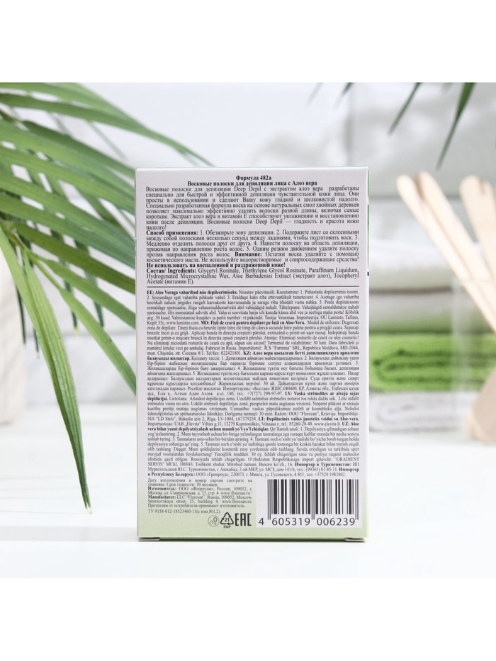 Floresan deep depil восковые полоски для депиляции лица с алоэ вера - предназначены для простого, быстрого и эффективного удаления нежелательных волос. Препятствуют формированию вросших волос, снижают интенсивность их роста. Входящие в состав натуральные компоненты, увлажняют, и смягчают обработанную поверхность, уменьшают и предотвращают появление покраснений и раздражений на нежной и чувствительной коже.