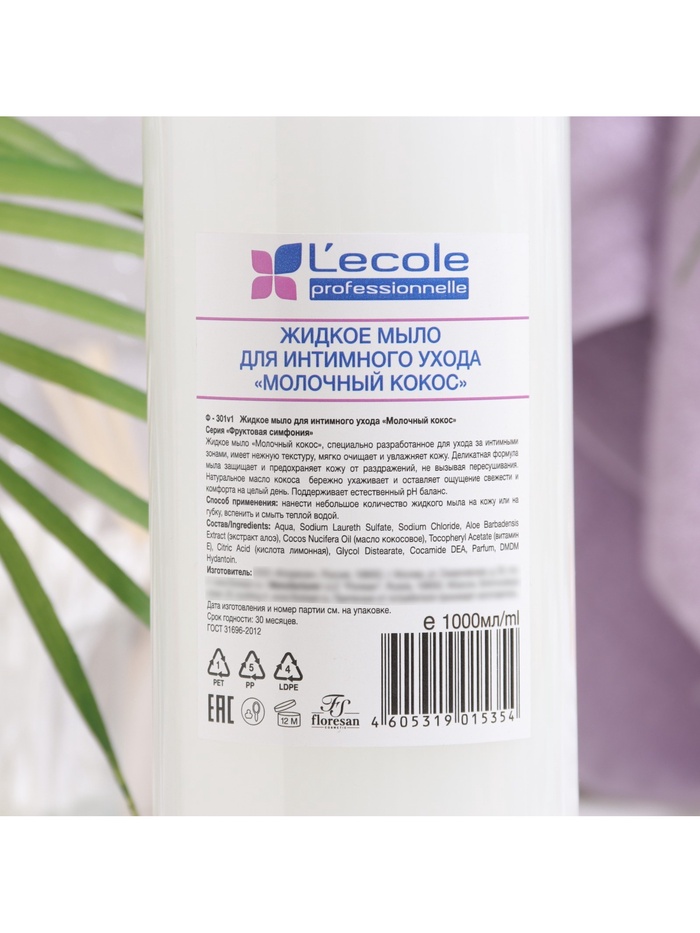 Жидкое мыло для интимного ухода Floresan, молочный кокос, 1000 мл