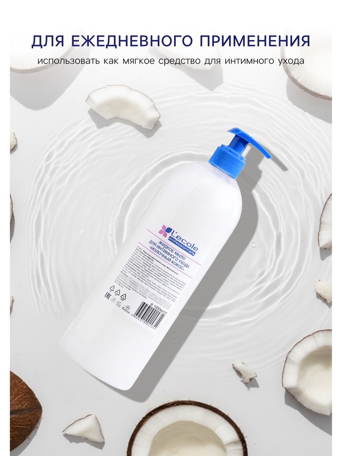 Жидкое мыло Молочный кокос имеет нежную текстуру, специально разработано для ухода за интимными частями тела, мягко очищает и увлажняет кожу. Активная формула мыла защищает и предохраняет кожу от раздражений, не вызывая пересушивания. Натуральное масло кокоса бережно ухаживает и оставляет ощущение свежести и комфорта на целый день. Поддерживает естественный pH баланс.