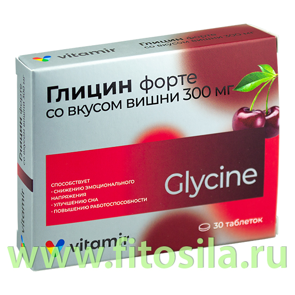 Глицин форте 300 мг "ВИТАМИР®" Вишня - БАД, № 30 таблеток х 634 мг