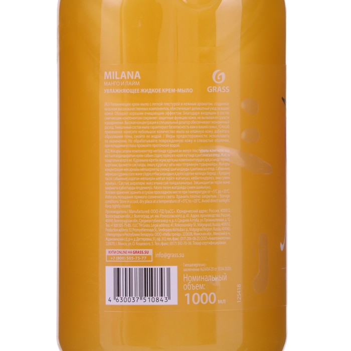 Жидкое крем-мыло Grass Milana «Манго и лайм», 1 л