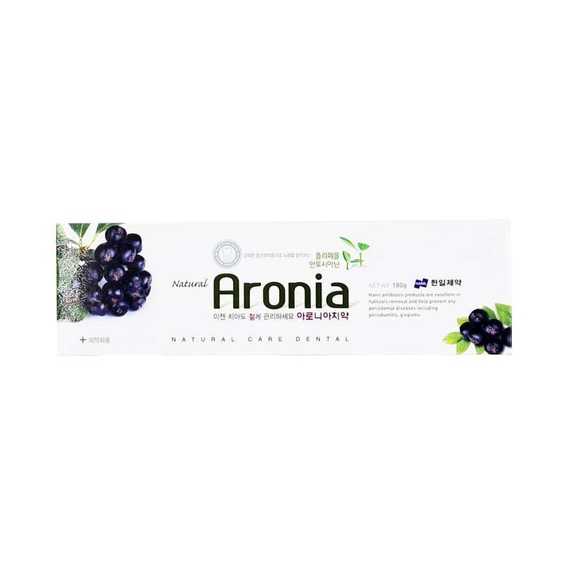 Зубная паста Hanil Aronia с выделением экстрактом черноплодной рябины значительного воспаления стенок толстой кишки в ротовой полости, повышает их тонус и эластичность. Паста успешно нормализует кислотно-щелочной баланс, а с высоким содержанием йода в длительном свободном противостоитовом воспалительном процессе, обеспечивает мощную антибактериальную защиту.