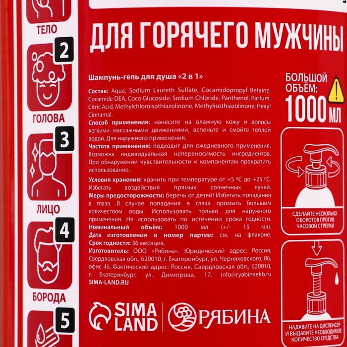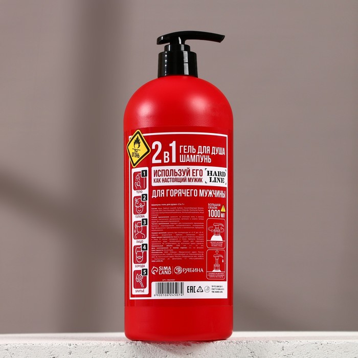 Гель для душа и шампунь для волос 2 в 1 «Средство тушения», 1000 мл, HARD LINE