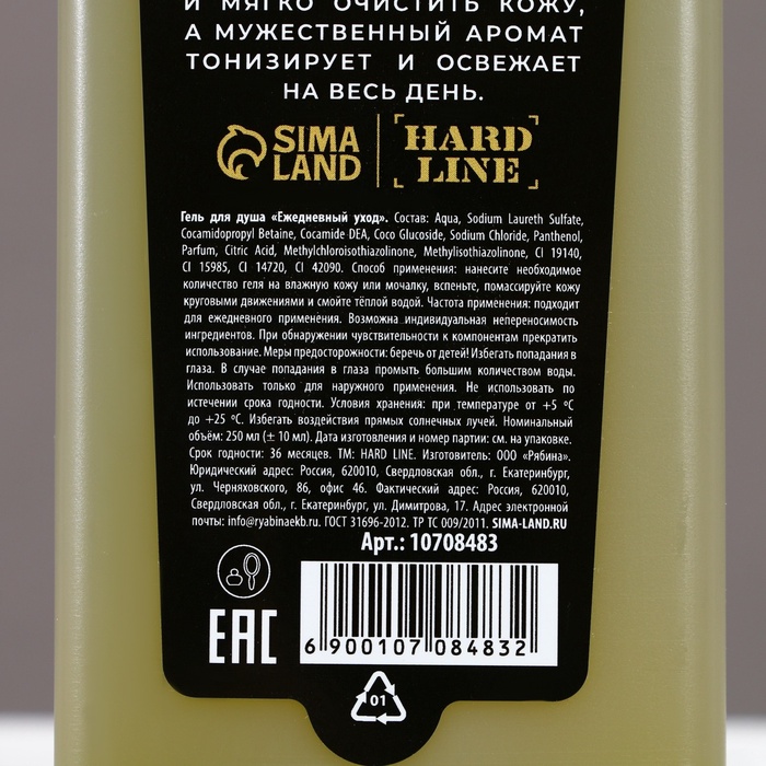 Гель для душа мужской «Золотой источник», 250 мл, аромат мяты и лайма, HARD LINE