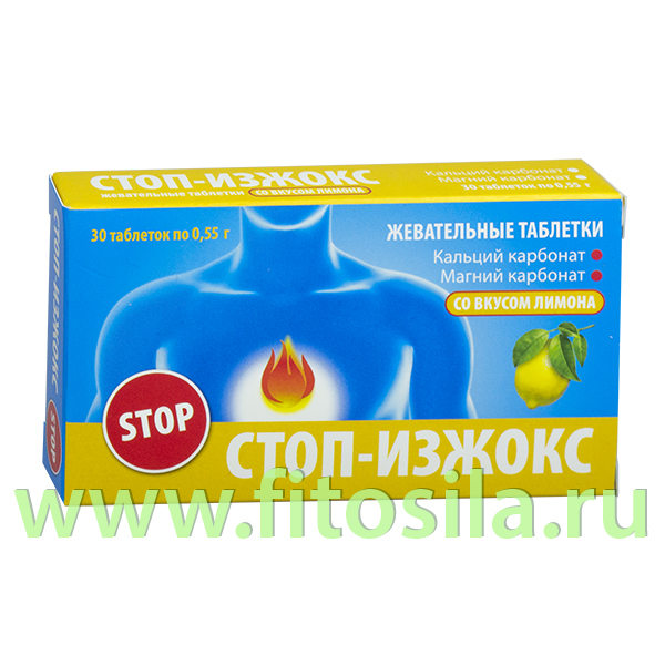 Стоп-Изжокс - вкусные жевательные таблетки от изжоги со вкусом мяты и лимона.