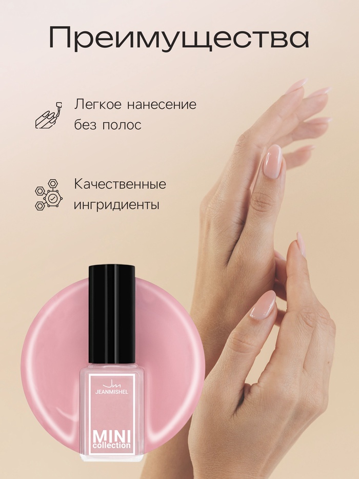 Линейка мини-лаков от Jeanmishel - удобный флакон, который можно взять с собой, компактная эргономичная кисточка, и лёгкое нанесение — лучшие качества для маленьких лаков.
