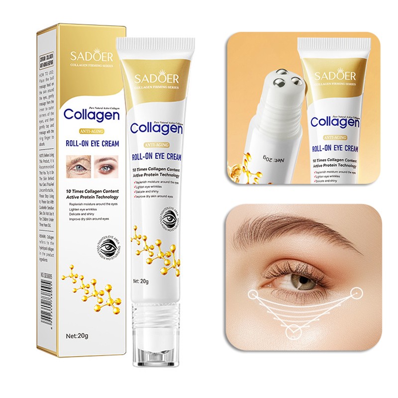 Крем-роллер для глаз c тремя охлаждающими массажными роликами с КОЛЛАГЕНОМ Sadoer, 20 гр.