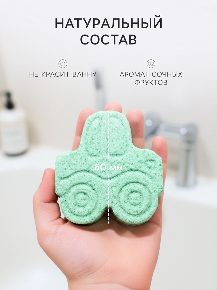 Насыщенный аромат летних фруктов наполняет ванну сладкой свежестью, превращая обычное купание в настоящее приключение. Бурлящая фигурка в виде машинки оживает в воде, создавая эффект шипения и пузырьков, а ребёнок может устраивать настоящее бурлящее ралли, гоняя машинку по поверхности воды.