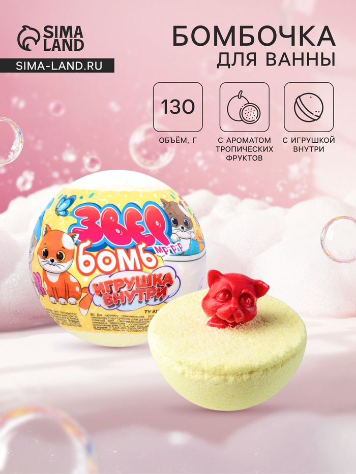 Бомбочка для ванн с игрушкой «звер бомб» тропик, 130 г