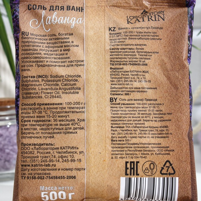 Соль для ванн Laboratory Katrin лаванда, 500 г