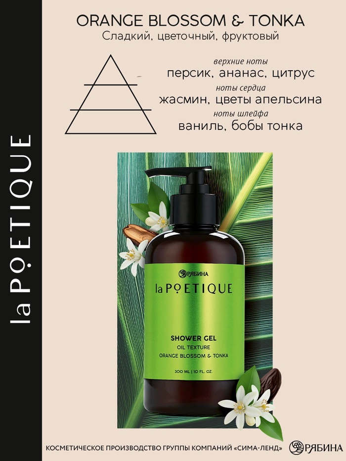 Гель для душа парфюмированный, аромат цветы апельсина и бобы тонка, 300 мл, laPOETIQUE