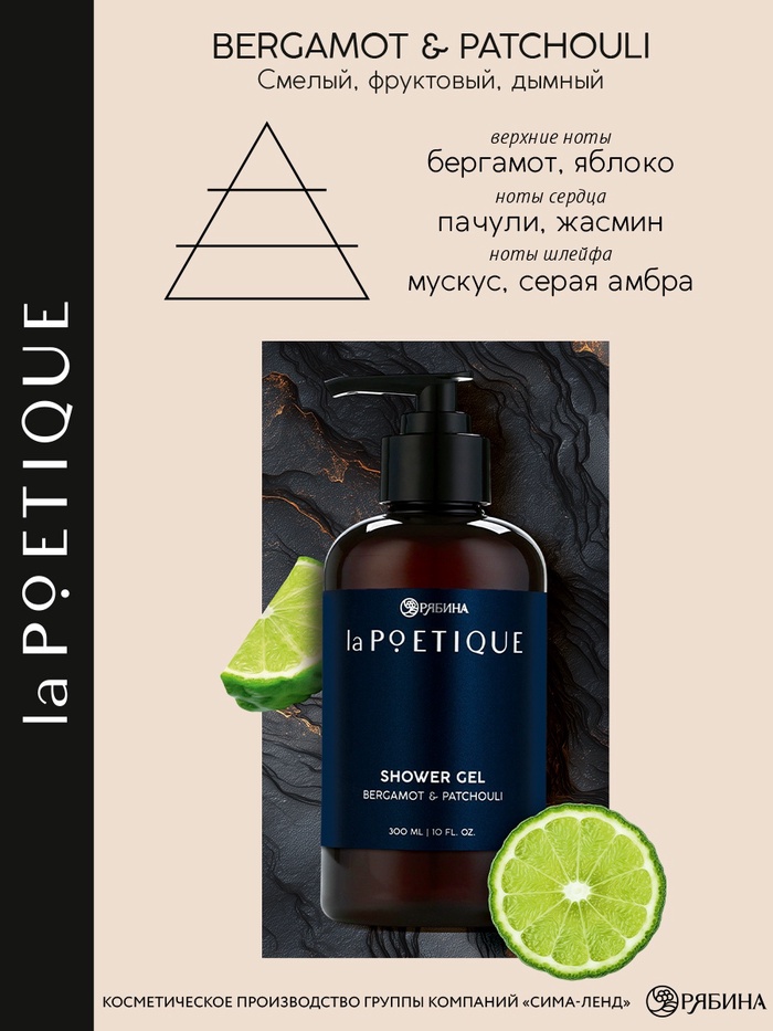 Гель для душа парфюмированный мужской, аромат бергамот и пачули, 300 мл, laPOETIQUE