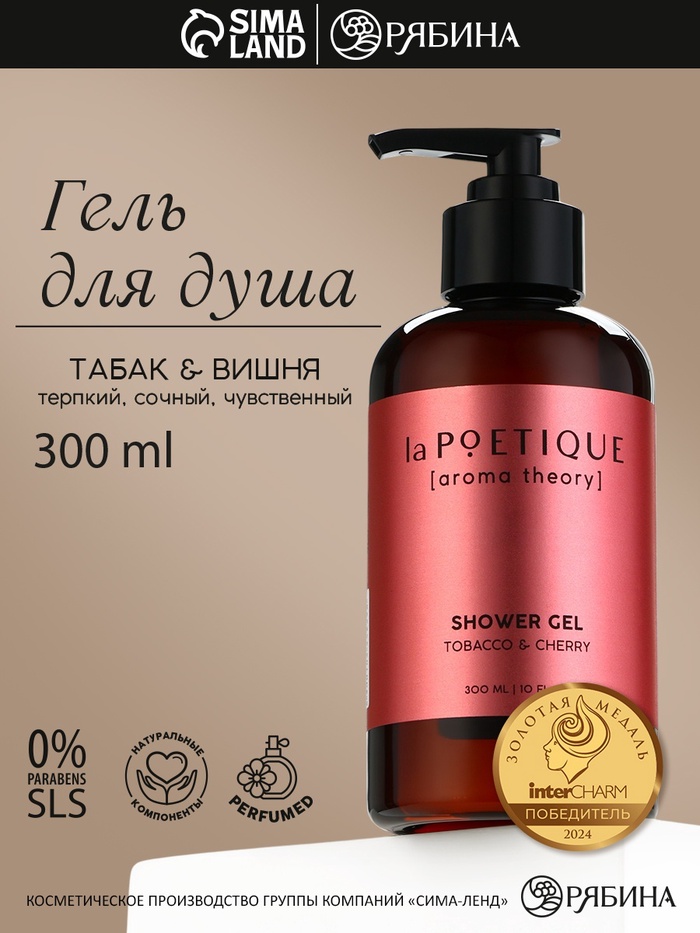 Гель для душа женский, 300 мл, аромат табака и вишни, LA POETIQUE