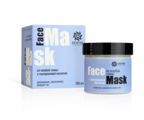 Маска для лица из голубой глины с гиалуроновой кислотой, пластик,100 мл, "Бизорюк"