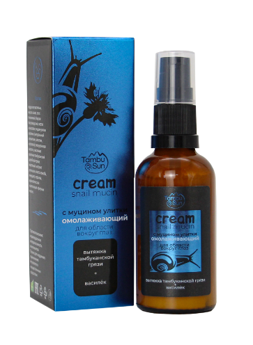 Омолаживающий крем «TambuSun» – это эффективное средство для ухода за чувствительной и нежной кожей век. Уникальный по составу улиточный муцин обладает омолаживающим и лифтинг свойствами, может глубоко проникать в дерму, разглаживать и сокращать морщины, предупреждать появление гусиных лапок в уголках глаз, питать и увлажнять эпидермис. А вытяжка тамбуканской грязи способна защищать от обезвоживания, появления тёмных кругов и мешков под глазами, насыщая клетки минеральным комплексом, поддерживающим состояние увлажнённости.