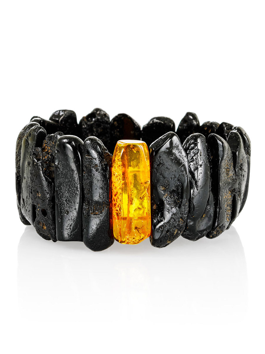 Браслет из натурального балтийского янтаря чёрного цвета с инклюзами «Помпеи»