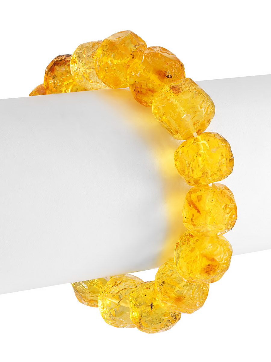 Браслет из натуральных янтарных шаров матового светло-лимонного оттенка