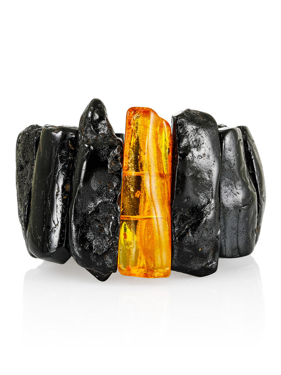 Браслет «Помпеи» из необычного янтаря чёрного цвета с вставкой с инклюзами