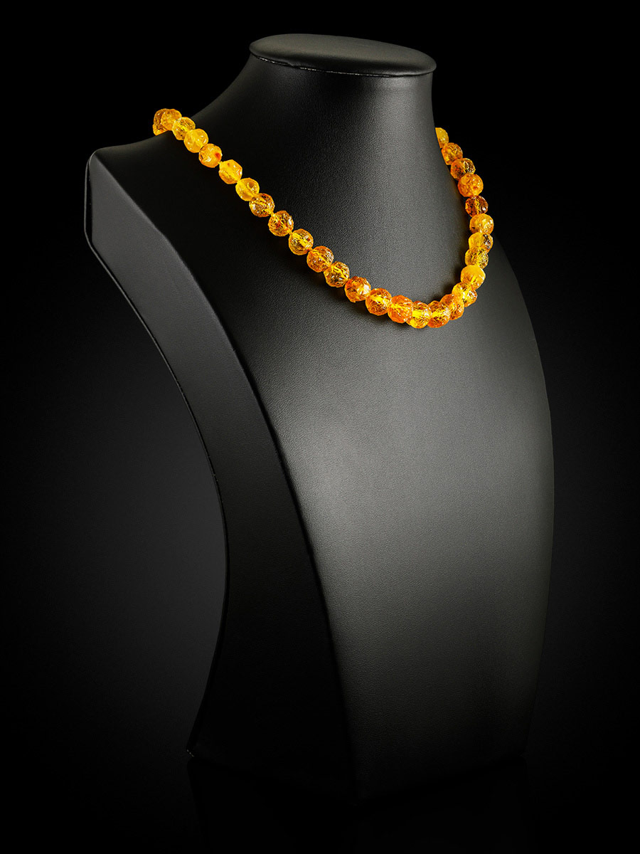 Бусы из натурального лимонного янтаря «Шар кусанка»