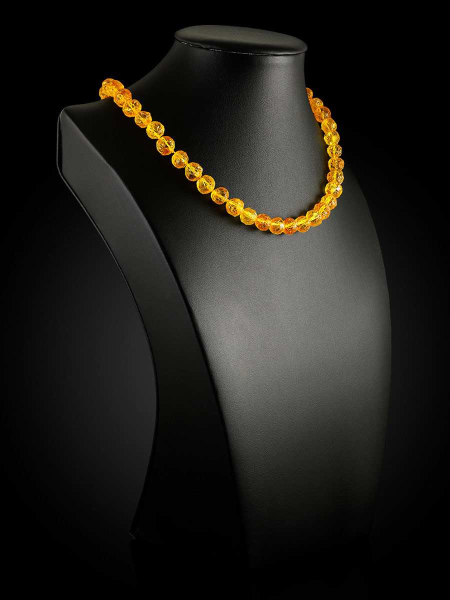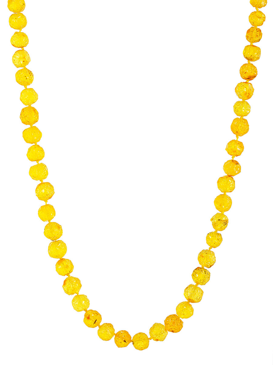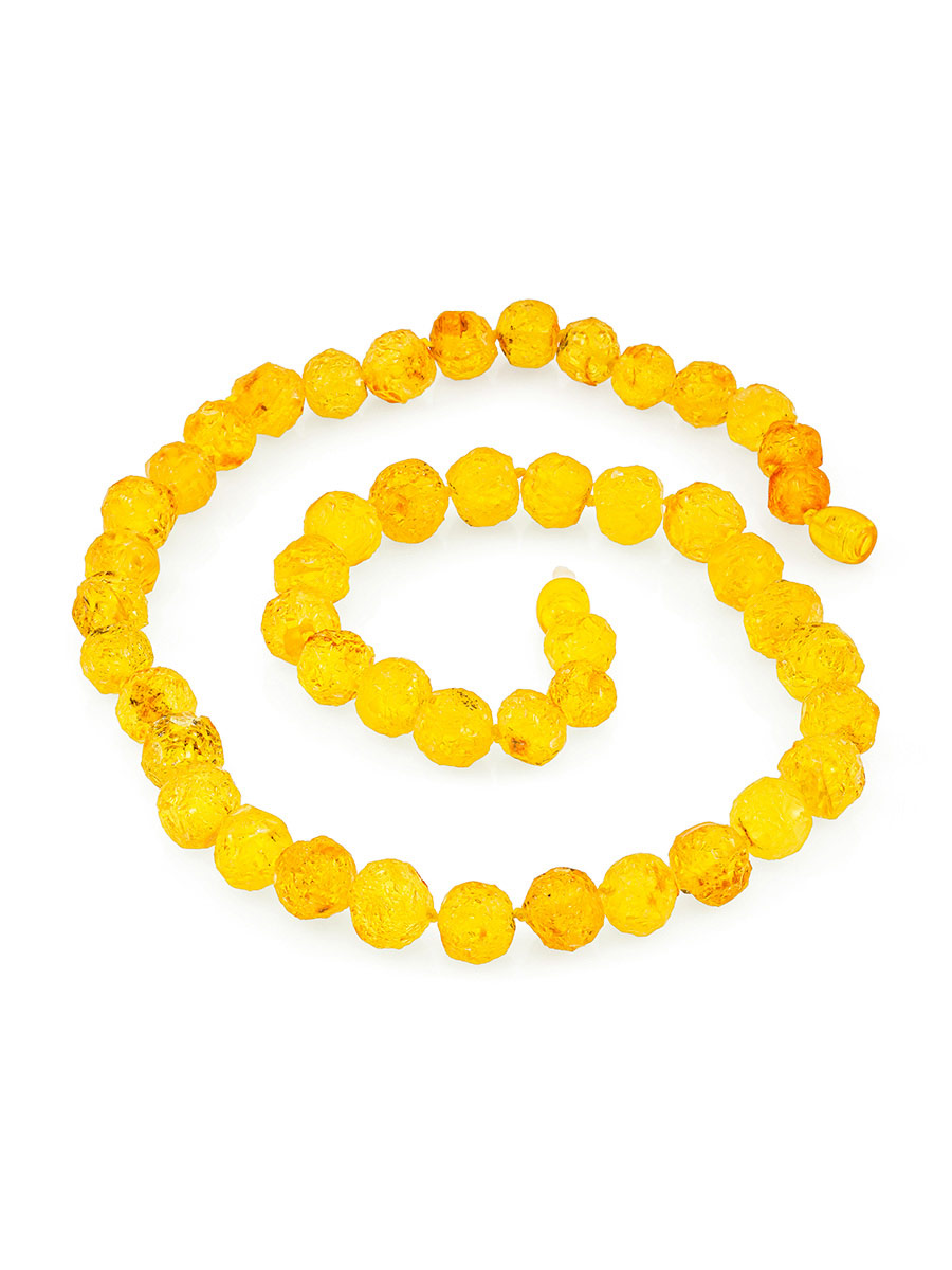 Бусы из натурального нешлифованного янтаря «Шар-кусанка золотисто-лимонный»