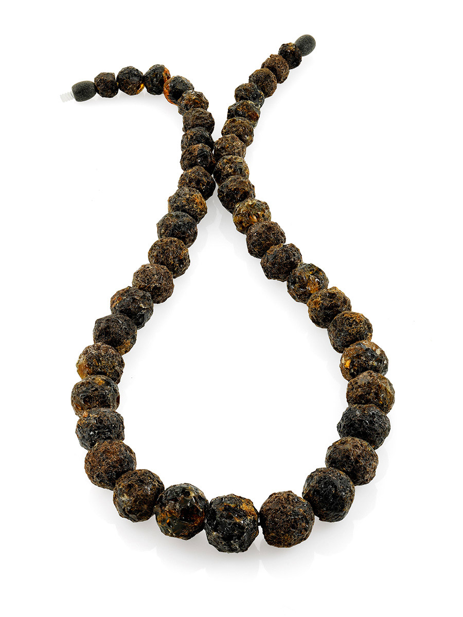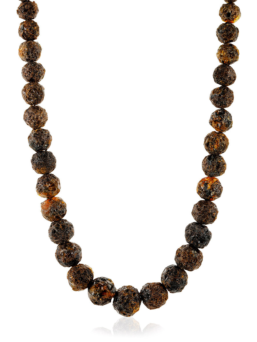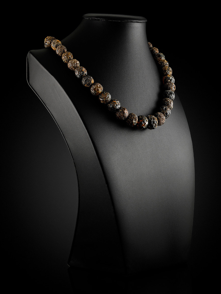 Бусы из натурального янтаря «Метеорит чёрный»