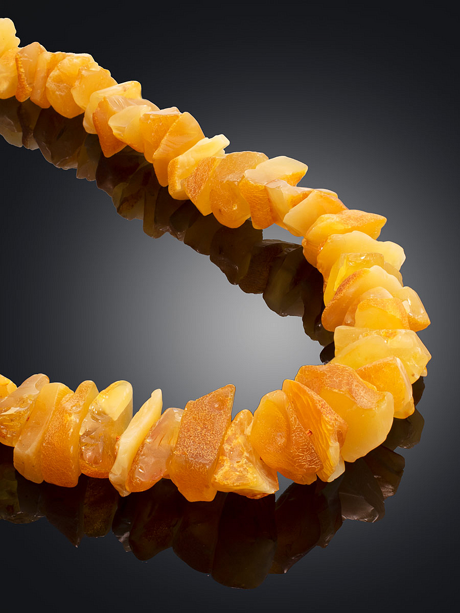 Бусы с лечебным эффектом из нешлифованного янтаря медового цвета