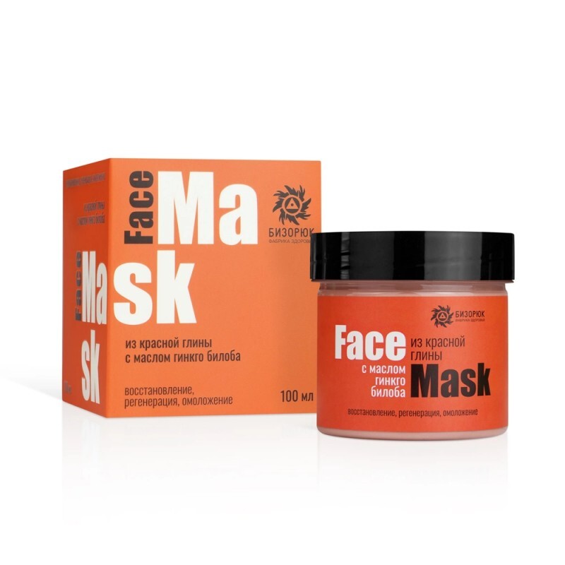 Маска для лица из красной глины с маслом гинкго билоба, пластик, 100 мл, "Бизорюк"