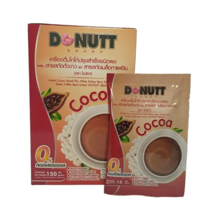 Всем, кто любит пить какао и заботится о своей фигуре, тайская компания Donut рекомендует этот напиток. Основными компонентами являются зеленые кофейные зерна и белая фасоль, способствующая улучшению метаболизма. Напиток подавляет процесс усвоения сахара и жира и ускоряет процесс расщепления жира, который накапливается в разных частях тела. Помогает снизить аппетит и сокращает частоту употребления пищи.