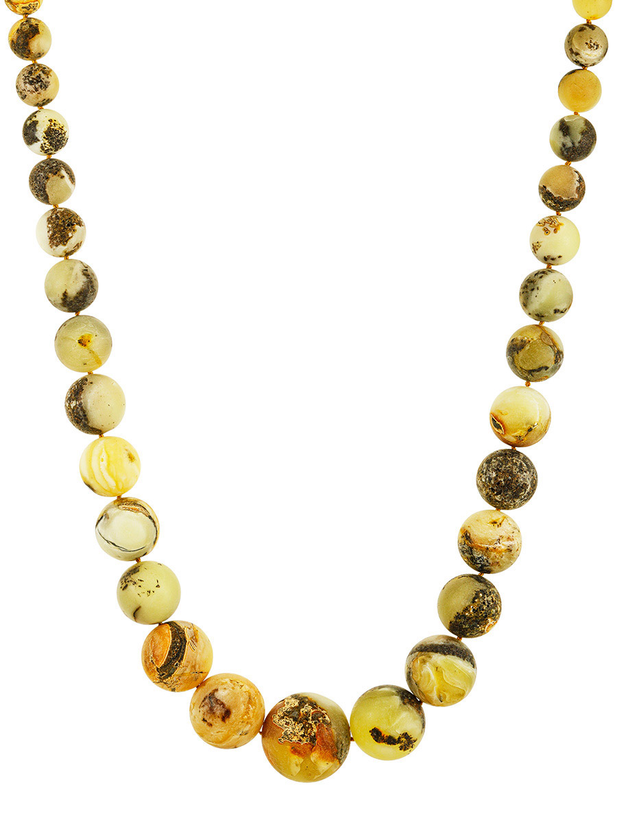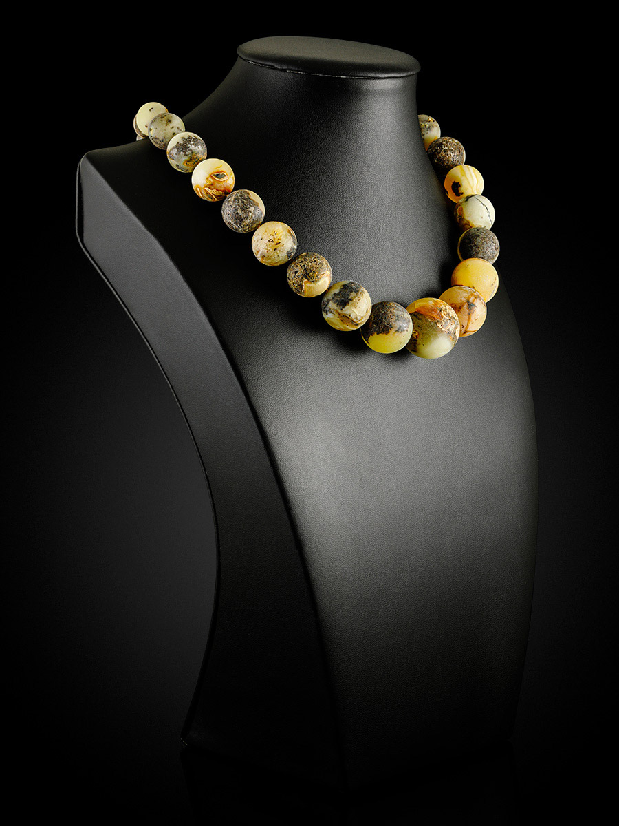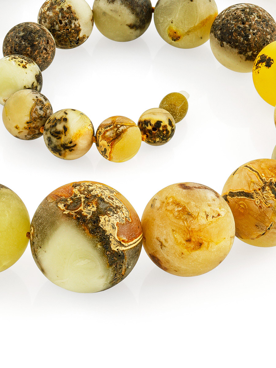 Эффектные объёмные бусы из натурального балтийского янтаря «Метеорит сатиновый пёстрый»