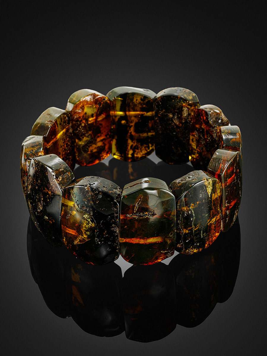 Эффектный яркий браслет из натурального цельного янтаря с инклюзами «Помпеи»