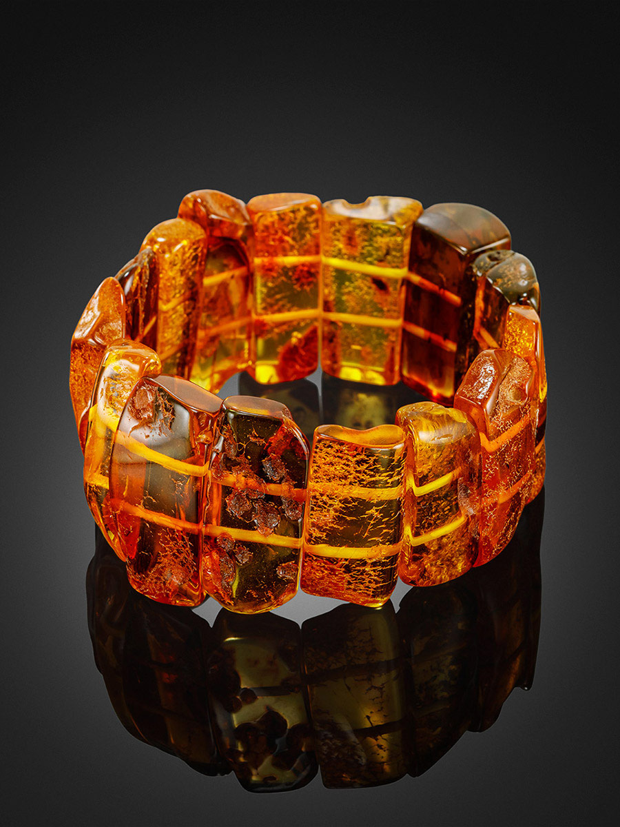 Эффектный яркий браслет из текстурированного балтийского янтаря «Помпеи»
