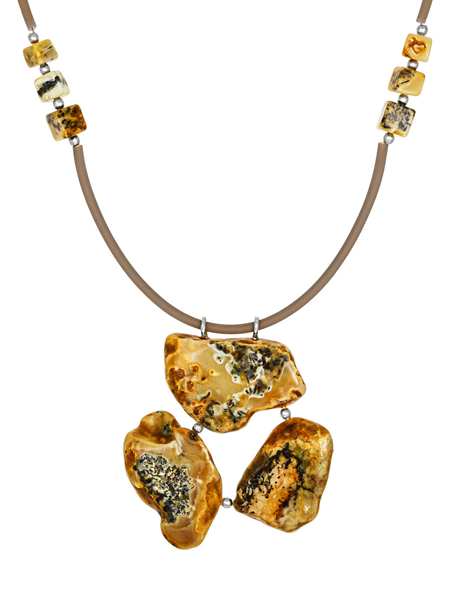 Колье с подвеской из натурального текстурного янтаря «Тринидад»