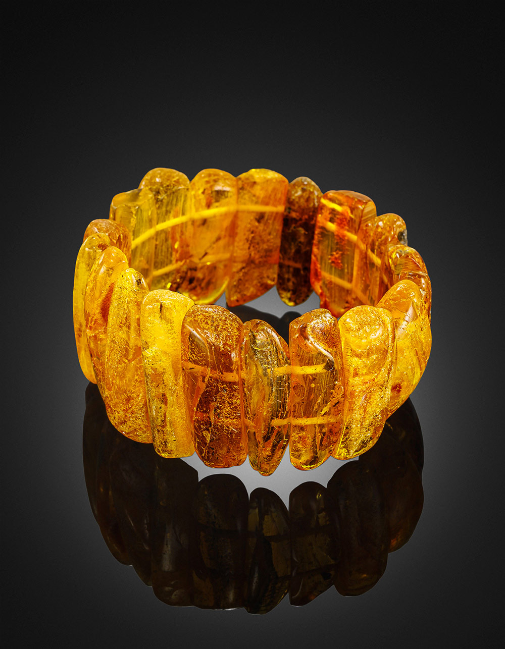 Красивый браслет «Помпеи» из цельного янтаря солнечного оттенка