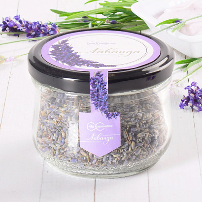 Лаванда Крымская в стеклянной банке — это сухие соцветия горной лаванды, собранной вручную на лавандовых полях в Крыму.