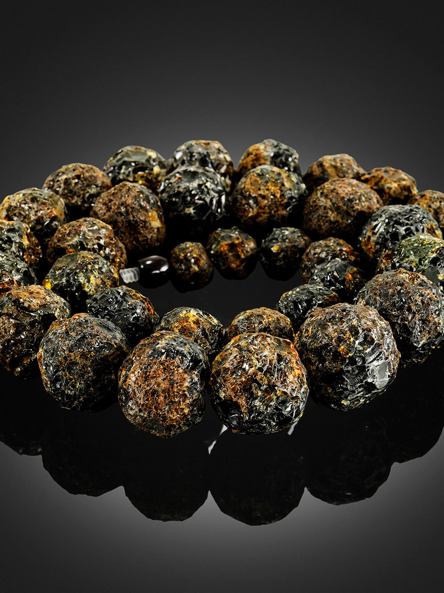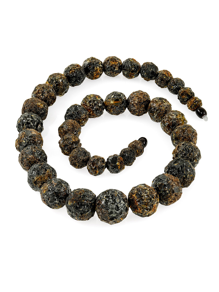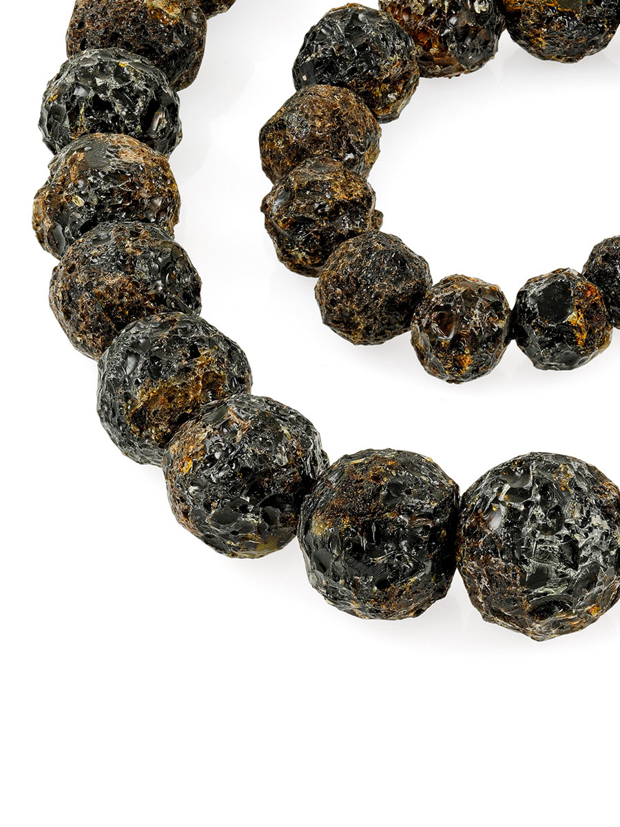 Лечебные бусы из натурального балтийского янтаря «Метеорит тёмный средний»