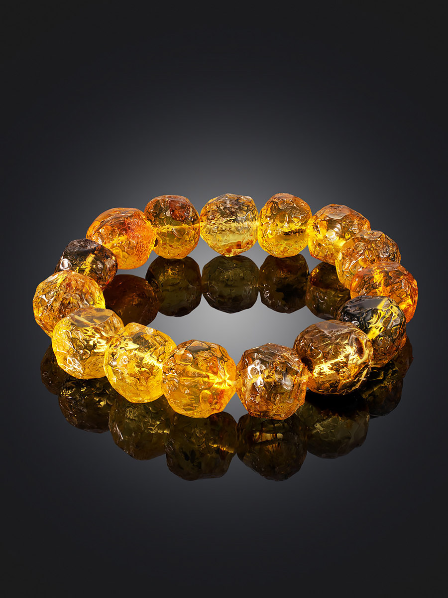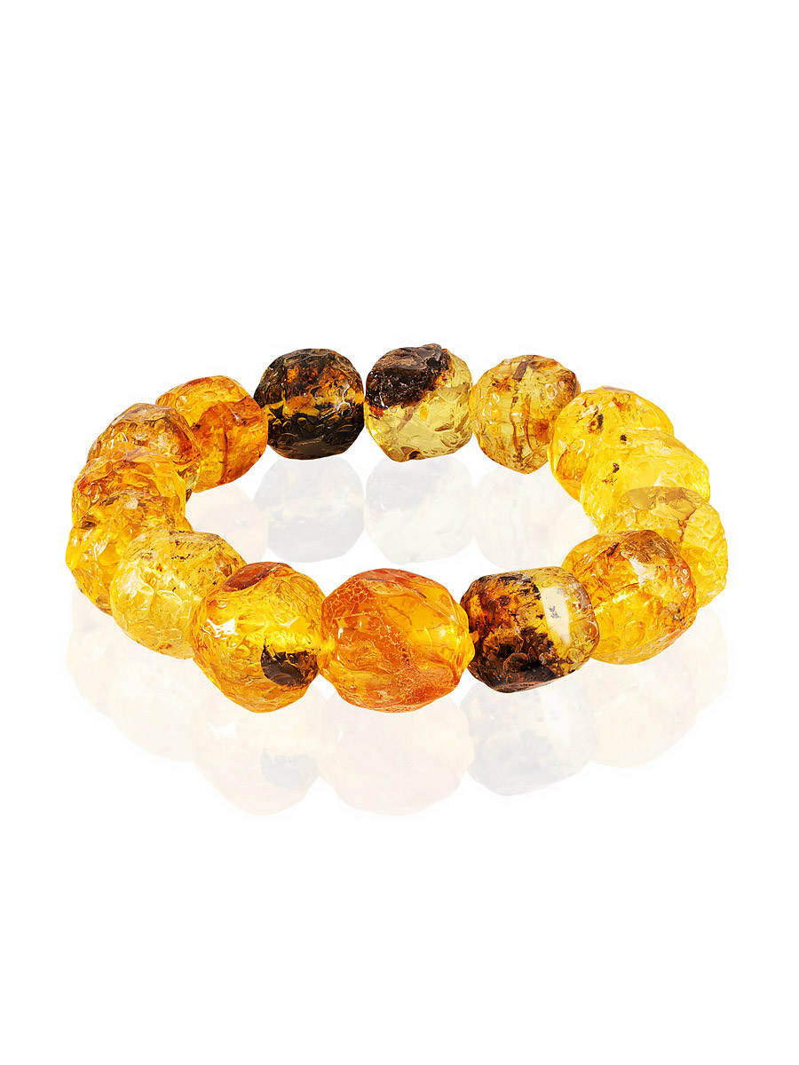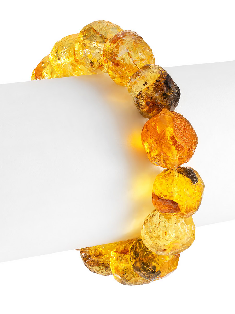 Объёмный браслет из натурального янтаря «Кусанка лимонная текстурная»