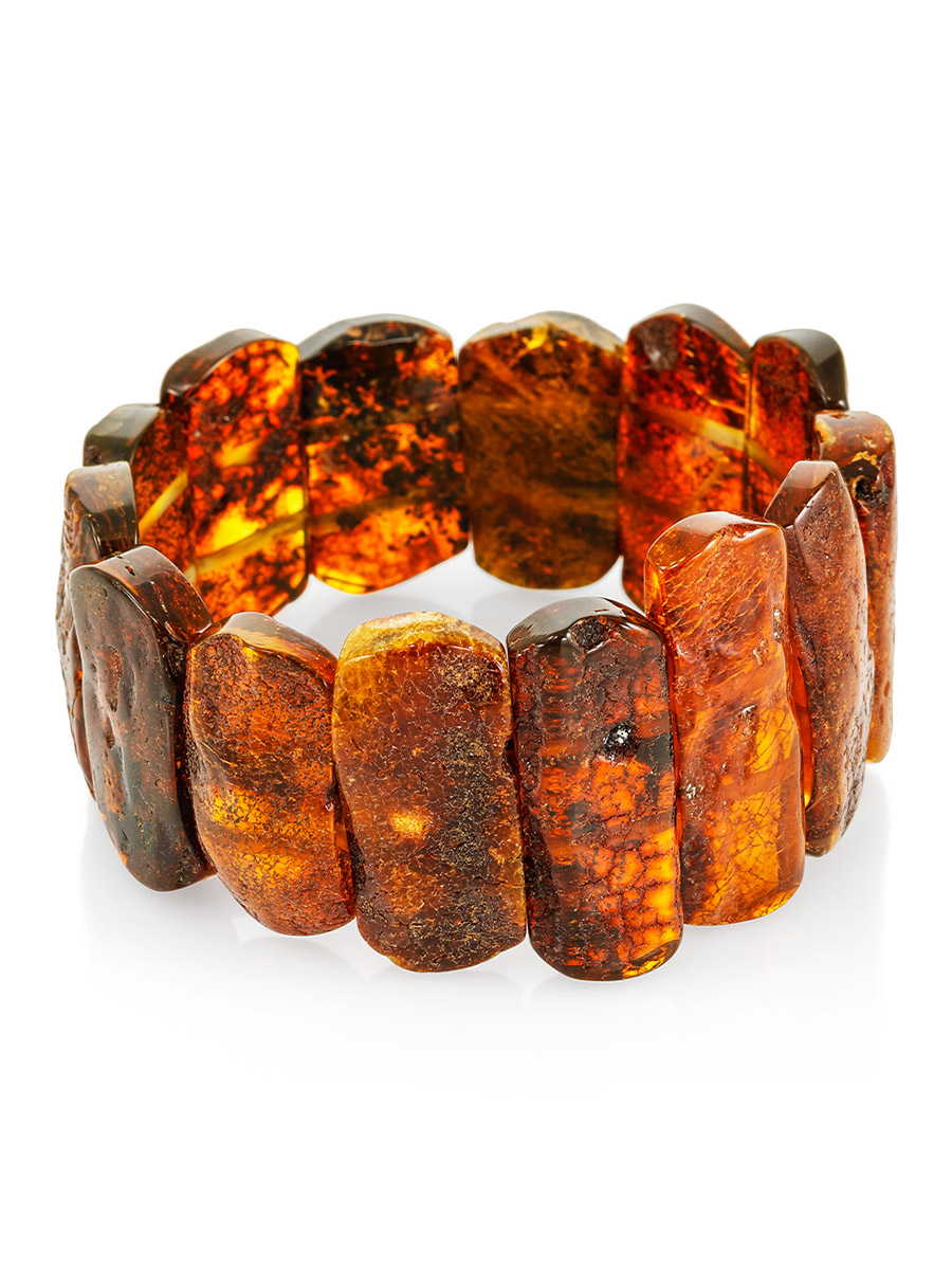 Объёмный лечебный браслет из янтаря «Помпеи» с живописной текстурой