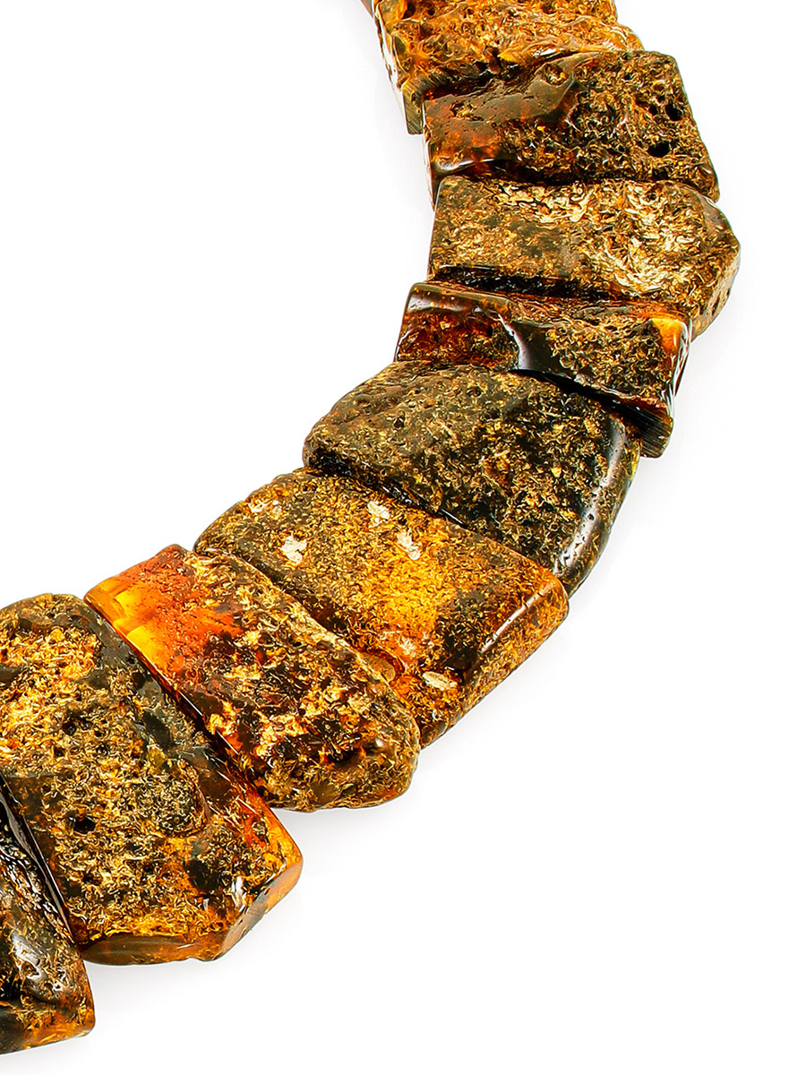 Это оригинальное эффектное колье понравится всем любительницам необычных и броских аксессуаров, поклонницам этнического стиля, а также тем, кто ищет в изделиях не только красоту, но и практическую пользу. Это колье создано из цельных кусочков натурального балтийского янтаря с природной коркой и обладает всеми полезными свойствами, которым так славится янтарь. Оно оказывает положительное воздействие на здоровье (подробнее о лечебных свойствах янтаря), а также позитивно влияет на эмоциональное состояние человека. Такое украшение отлично впишется и в повседневные, и в этнические образы, а самые смелые особы могут надевать его даже к дополнение к вечерним нарядам с открытыми плечами. зделия (г): 84.6 Ошибка при загрузке данных! (https://amberholl.ru/opt/catalog/amber_beads_for_health/natural_amber_necklace_for_health_n310101/)