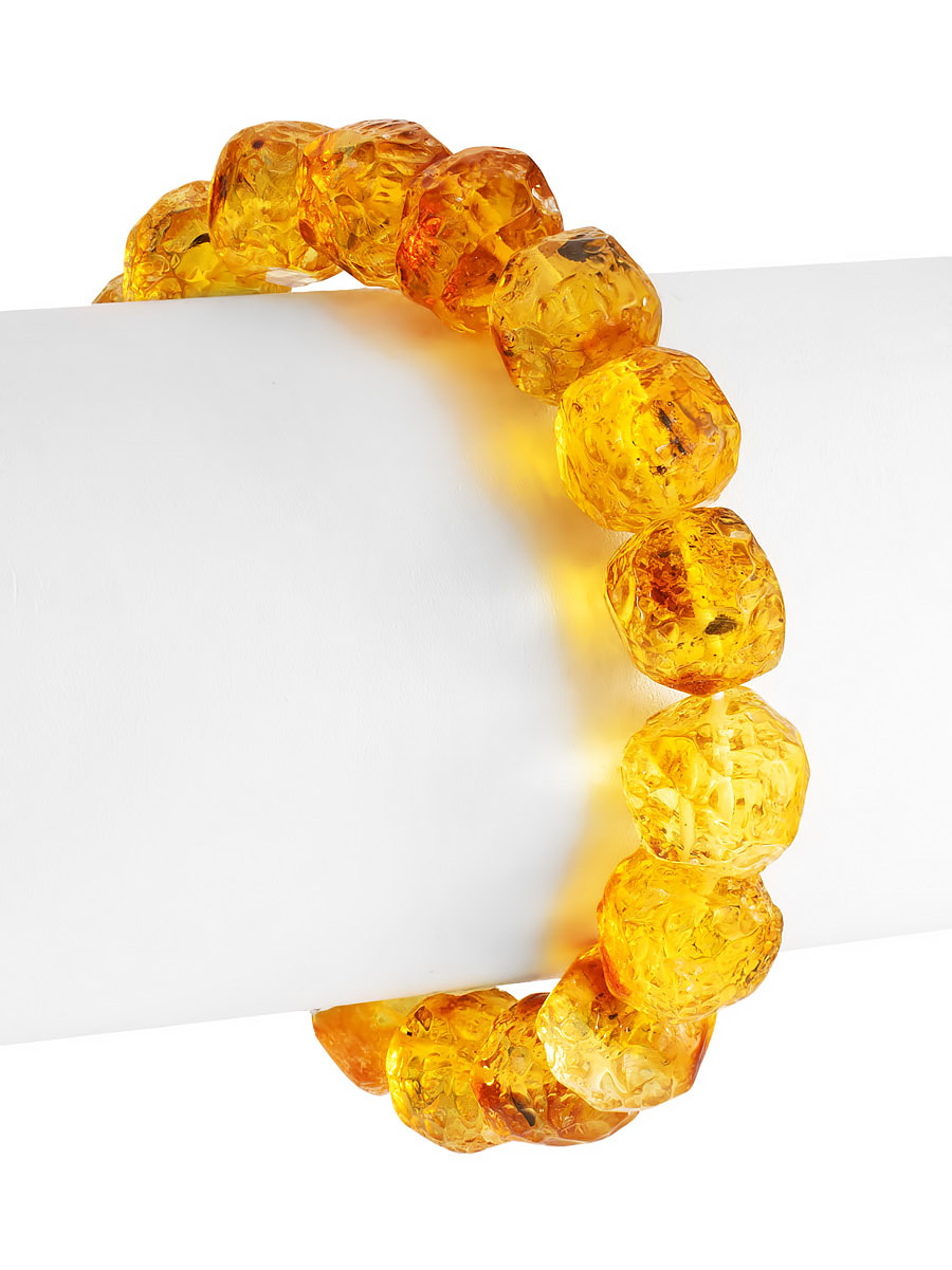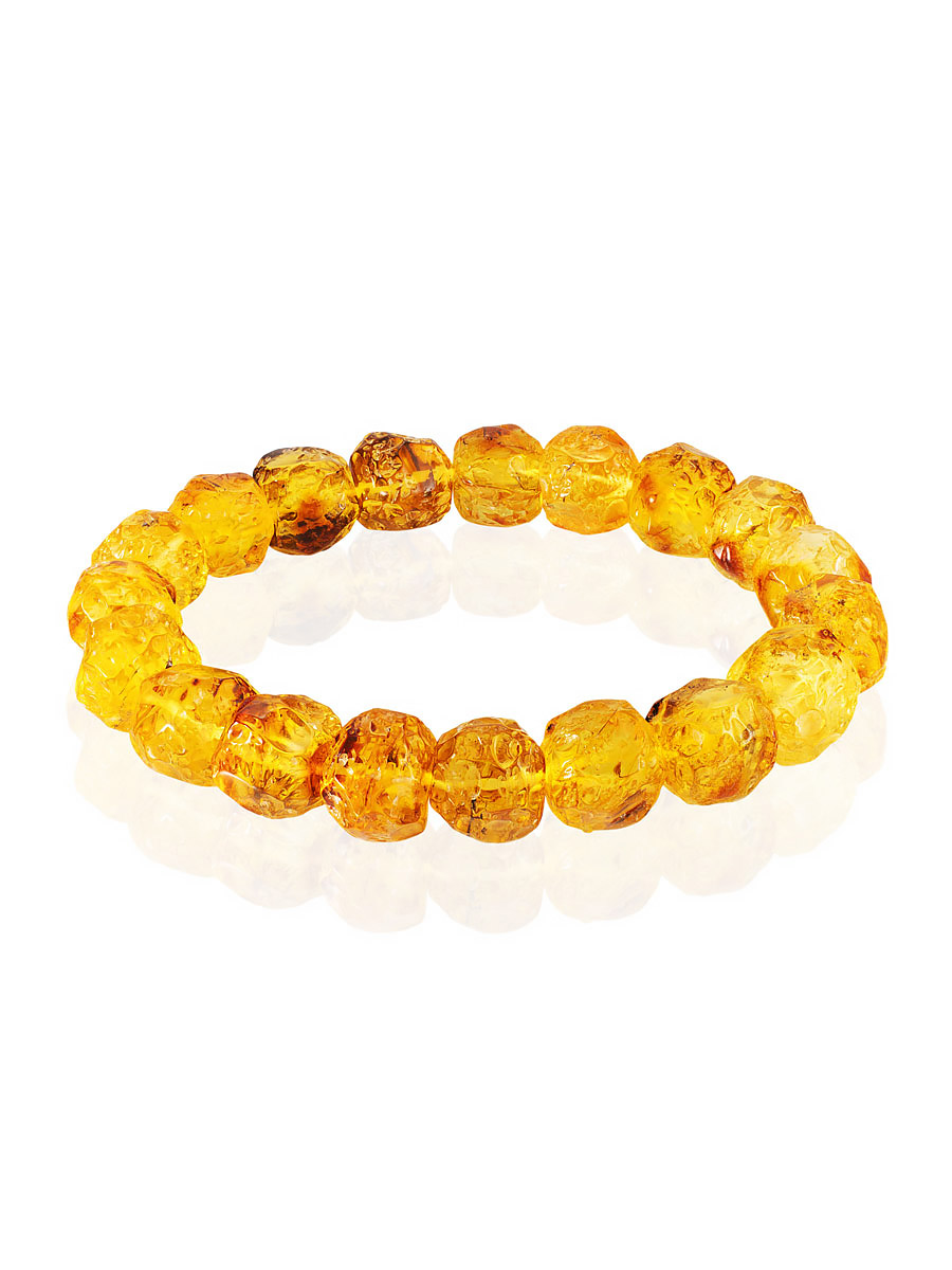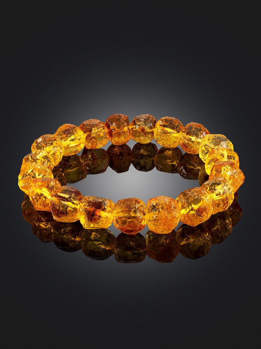 Сияющий янтарный браслет «Шар кусанка золотистый»