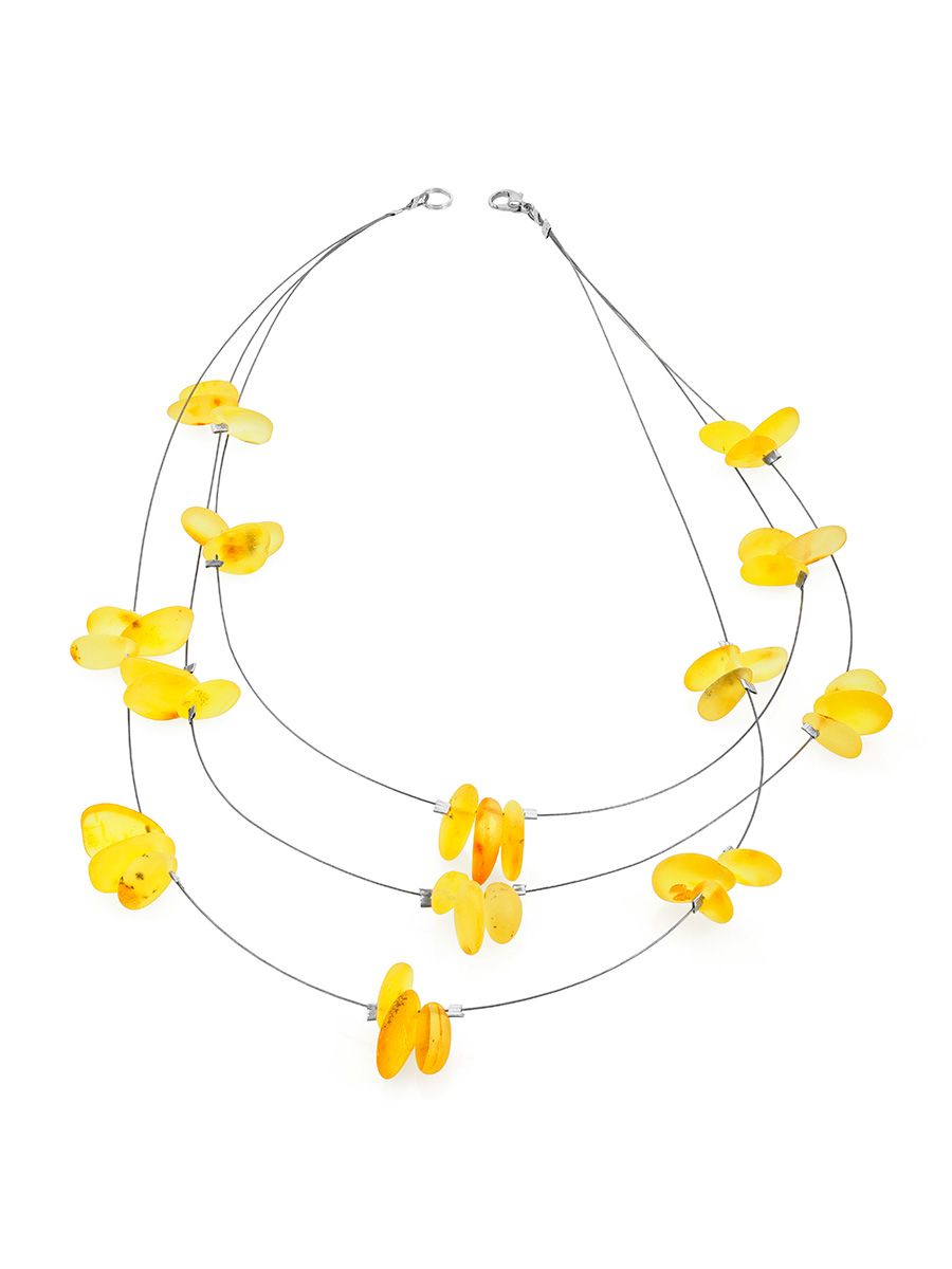 Стильное лёгкое колье из светлого янтаря с мягкой шлифовкой на струне «Росинки»