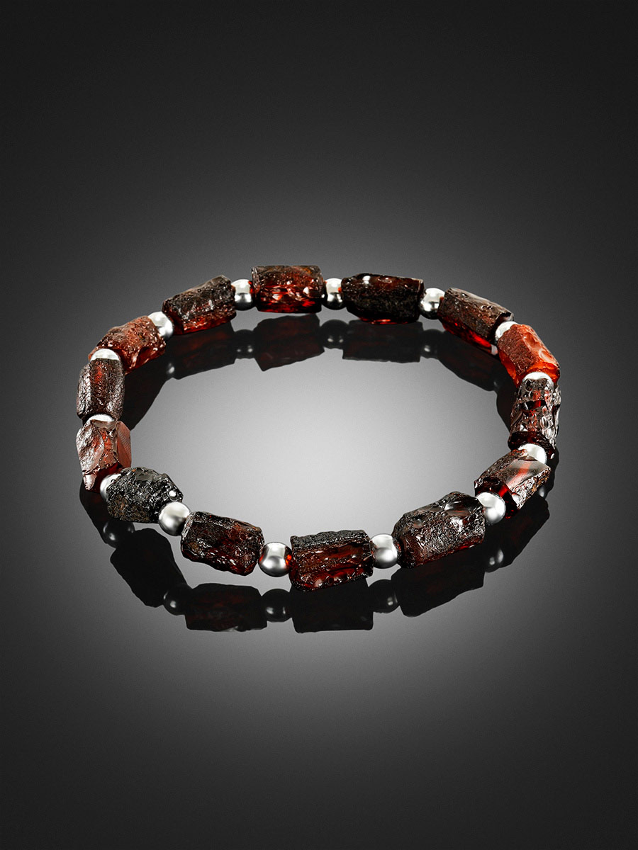 Стильный красивый браслет из натурального янтаря и бисера