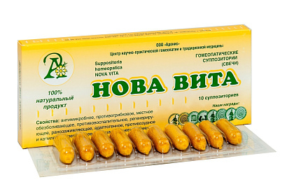 Форма выпуска: Суппозитории (Свечи) по 2,0 г. Показания: Геморрой, парапроктит, проктосигмоидит, язвы и трещины заднего прохода. Простатит и сопутствующее снижение половой потенции, эрозии, кольпиты, и другие заболевания женской половой сферы сопровождающиеся воспалением . Состав : одна свеча НОВА ВИТЫ содержит: прополис (Propolis) - 0,1 г. масло облепихи(Oleum Hippophaes) - 0,2 г. гомеопатическая эссенция женьшень (Ginzeng) - 0,1 г. экстракт(концентрат) из лечебной грязи озера Тамбукан - 0.5 г. суппозиторная основа(масло какао) насыщенная прополисом до - 2,0 г. Терапевтическое действие: антимикробное, противогрибковое, местное обезболивающее, противовоспалительное, регенерирующее, ранозаживляющее, адаптогенное, противозудное и капилляроукрепляющее. Улучшает тканевой обмен. Показания к применению и фармакологические свойства отдельных компонентов: прополис оригинальная технология приготовления обеспечивает активное всасывание следствием чего является не только поверхностное, но и внутритканевое многоплановое действие: антимикробное, противогрибковое, местное обезболивающее, противовоспалительное, ранозаживляющее, адаптогенное и противозудное. Убивает микробов, устраняет различные признаки и симптомы воспаления, такие как: краснота, отечность, боль и др. ПОВЫШАЕТ ПОТЕНЦИЮ. Кольпиты, бели, эрозия, метрит, эндометрит, параметрит, аднексит, геморрой, трещины, язвы, простатиты. Масло облепихи Язва желудка. Язва двенадцатиперстной кишки. Воспалительные болезни шейки матки. Воспалительные болезни влагалища и вульвы. Эрозия и эктропион шейки матки регенерирующее-стимулирует репаративние процессы(ускоряет эпителизацию) при поражения слизистой оболочки прямой кишки и влагалища различной этимологии. Способствует излечению трудно заживающих ран, наружных и внутренних язв, ожогов выводит из организма сопи тяжелых металлов; повышает эластичность кровеносных сосудов, обладает антисклеротическим действием; улучшает работу сердечно-сосудистой системы; нормализует жировой белковый и холестериновый обмены; положительно влияет на функцию щитовидной железы; нормализует работу печени, ПОВЫШАЕТ ПОТЕНЦИЮ. Гинзенг адаптогенное, тонизирующее при умственном и физическом переутомлении, стимулирует секрецию желёз, воздействует на нижние отделы спинного мозга. ПОВЫШАЕТ ПОТЕНЦИЮ. Слабость гениталиев, Сладострастное щекотание в конце уретры, Половое возбуждение без возможности его реализации. Ощущение давления в яичках. Тугоподвижность спины, контрактуры суставов, хруст в суставах. Экстракт (концентрат) из лечебной грязи озера Тамбукан противовоспалительное(оказывает влияние на обе фазы воспалительного процесса), ранозаживляющее, регенерирующее, иммунокорректирующее, мощное антимикробное действие. Геморрой, воспалительные заболевания мочеполовой системы, повреждения слизистых оболочек, трудно заживающие раны, язвы, трещины. Противопоказания: Повышенная чувствительность к составляющим компонентам Способ применения и дозы: После гигиенической процедуры 1 свечу следует ввести как можно глубже в прямую кишку перед сном. Курс лечения 10-30 дней (определяется тяжестью заболевания) Побочное действие: Не выявлены Формы выпуска: 10 свечей в коробке. Условия хранения: Хранить в сухом, защищённом от света, недоступном для детей месте, при температуре не выше +1
