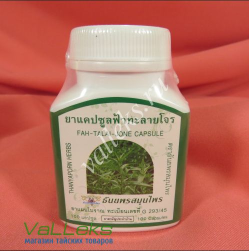 Фа-талай-джон - тайские натуральные капсулы: при простуде вместо антибиотиков.Травянистое растение (Andrographis paniculata), культивирующееся в Таиланде и в Индии и традиционно использовавшееся в народной медицине для лечения болезней верхних дыхательных путей и легких до появления антибиотиков.