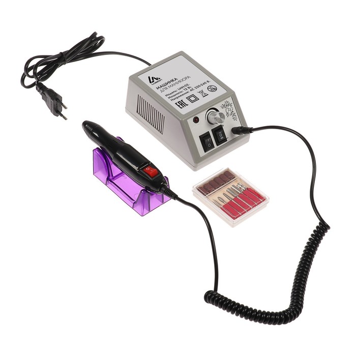 Аппарат для маникюра Luazon LMH-02, 6 насадок, 12 Вт, до 20000 об/мин, серый