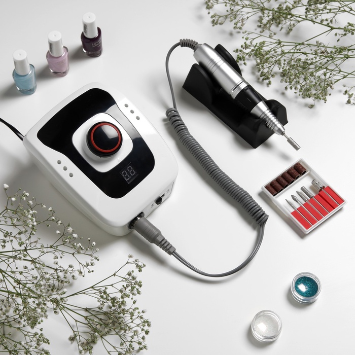 Аппарат для маникюра Luazon LMH-06, 6 насадок, 30 Вт, до 35000 об/мин, черно-белый